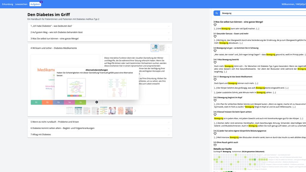 Informationsbroschüren oder Webseiten liefern in der Regel standardisierte Inhalte, die individuelle Vorkenntnisse und Bedürfnisse kaum berücksichtigen. Darum haben TU Graz (Institute of Visual Computing), Uni Graz (Institut für Psychologie) und Med Uni Graz (Institut für Allgemeinmedizin und evidenzbasierte Versorgungsforschung) am Beispiel des Diabetes mellitus gemeinsam neue Wege erforscht, um Patient:innen mit für sie relevanten Informationen zu versorgen. Unter der Leitung von Univ.-Prof. Dr. Tobias Schreck, MSc, vom Institute of Visual Computing der TU Graz wurde gemeinsam ein adaptives Informationssystem entwickelt, das medizinisches Wissen personalisiert aufbereitet. Ziel war es, wissenschaftlich geprüfte Inhalte so zu präsentieren, dass Patient:innen sie leichter verstehen und einordnen können, um dadurch ein besseres Verständnis für Diagnosen und Therapieansätze zu schaffen.