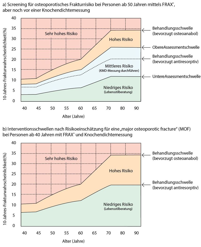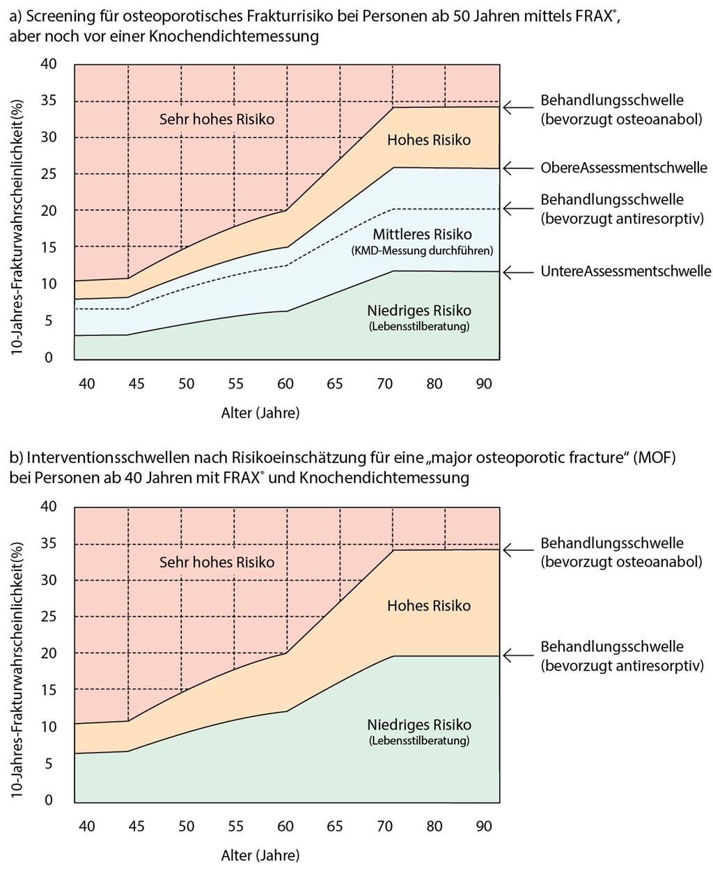 Das Frakturrisiko steht heute zunehmend im Mittelpunkt der Therapieentscheidung – insbesondere durch den Einsatz des FRAX® (Fracture Risk Assessment)-Tools, das die 10-Jahres-Wahrscheinlichkeit für osteoporotische Frakturen („major osteoporotic fracture“; MOF) und hüftgelenksnahe Frakturen abschätzt.