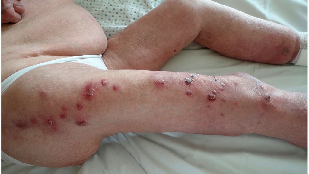 Rein klinisch kommen verschiedene Krankheitsbilder in Betracht: So könnte es sich um eine tiefe Trichophytie handeln, eine sehr seltene, sich von Haut und Unterhaut, Lymphknoten und inneren Organen ausbreitende Dermatophyten-Infektion. Infrage käme auch ein B-Zell-Lymphom („legtype“).
