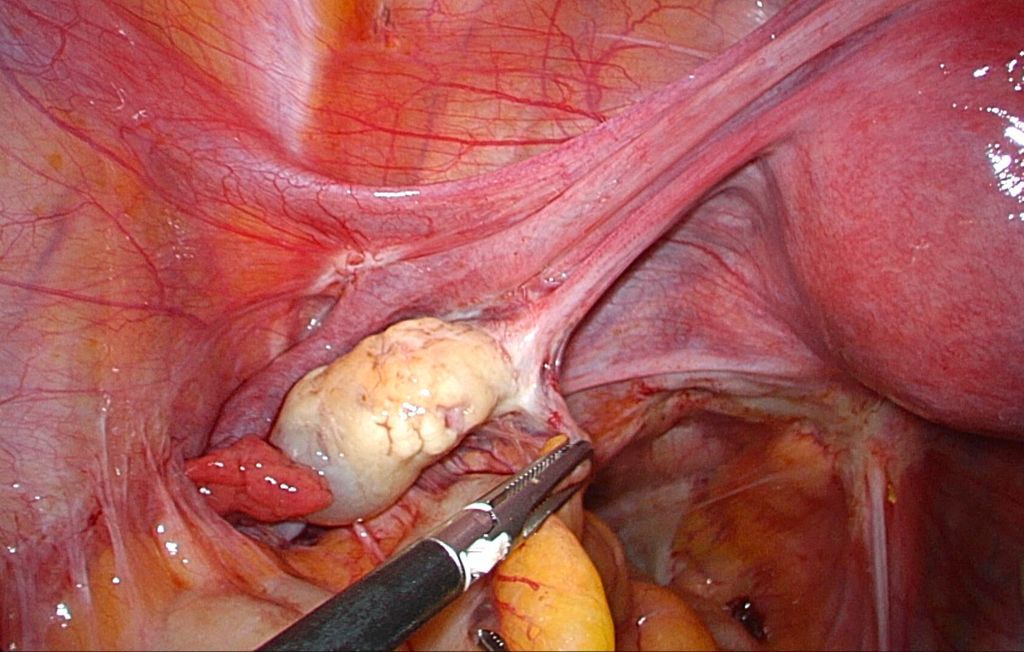 Abb. 1: Tief infiltrierende Endometriose des Septum rectovaginale und des linken Sakrouterinligaments
