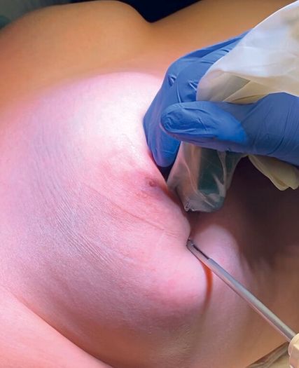 Bei ungünstiger Position eines Befundes, z.B. unmittelbar subkutaner oder präpektoraler Lage oder Nähe zu einem Implantat, besteht das Risiko einer Verletzung durch die Nadelspitze. Befunde mit einem Durchmesser >2cm bedeuten eine deutlich längere Interventionsdauer mit vermehrtem Blutungsrisiko und höherer Wahrscheinlichkeit einer unvollständigen Befundentfernung.12 In diesen Fällen stellt eine offene operative Entfernung oft ein sinnvolleres Vorgehen dar. Infektionen, Serombildung oder ausgedehnte Vernarbung werden bei VAB insgesamt sehr selten beschrieben.