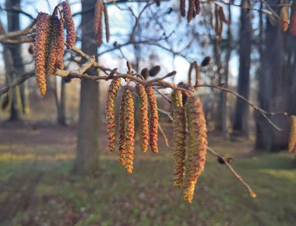 Abb. 1: Die Purpurerle (Alnus spaethii) blüht ab Mitte Dezember in vielen städtischen Parkanlagen