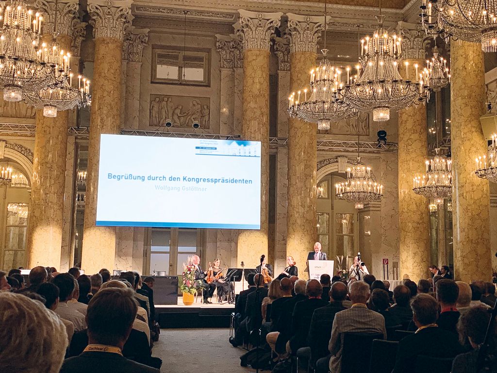 Diese Veranstaltung sticht aber immer wieder auch mit ihrer kulturell hochwertigen Eröffnung hervor: Heuer wurde das 1. Wiener Streichquartett unter der Leitung von Prof. Rainer Küchl, Erster Konzertmeister der Wiener Philharmoniker und des Staatsopernorchesters i.R., engagiert, um den anwesenden HNO-Mediziner:innen akustische Genüsse zu bescheren. Anschließend begrüßte Univ.-Prof. Dr. Wolfgang Gstöttner, amtierender Präsident der HNO-Gesellschaft, die Anwesenden im Zeremoniensaal der Hofburg (Abb. 3). Er stellte die Vorreiterrolle Österreichs in der HNO-Medizin in den Vordergrund: 2023 feiern wir 150 Jahre HNO-Klinik in Wien. Aber auch ein weiterer Meilenstein wurde vor 150 Jahren gelegt: Am Silvesterabend des Jahres 1873 führte der Chirurg Theodor Billroth im Rahmen einer Notoperation die erste Laryngektomie durch.