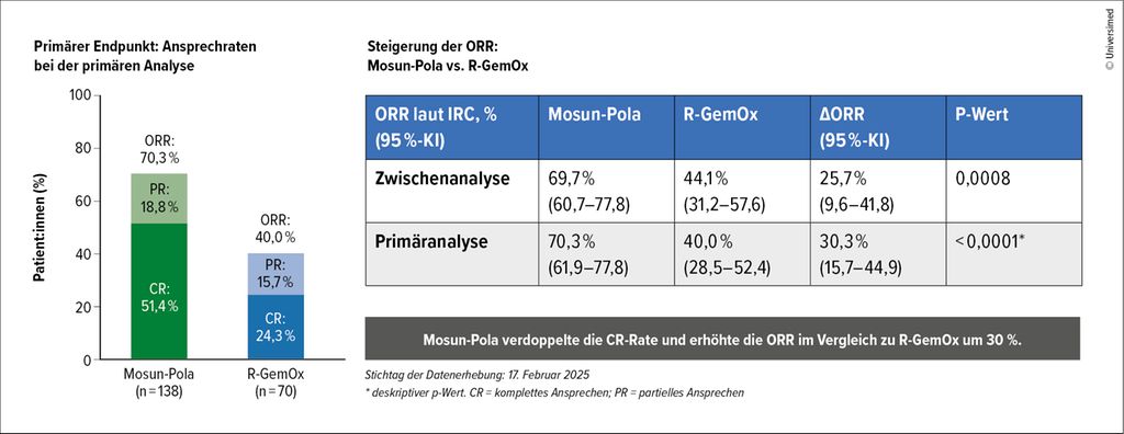 Abb. 1: Mosun-Pola erhöhte die Gesamtansprechrate signifikant im Vergleich zu R-GemOx (modifiziert nach Westin J et al.)3