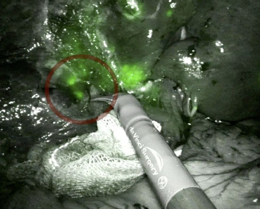Abb. 3: Intraoperativ aufleuchtende Lebermetastasen nach ICG-Applikation, die ohne ICG nicht sichtbar waren