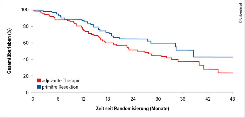 Beim primär resektablen Pankreaskarzinom bietet die neoadjuvante FOLFIRINOX-Therapie keinen Überlebensvorteil, trotz histopathologischer Vorteile. Der Standard bleibt die Upfront-Resektion mit adjuvanter Chemotherapie.