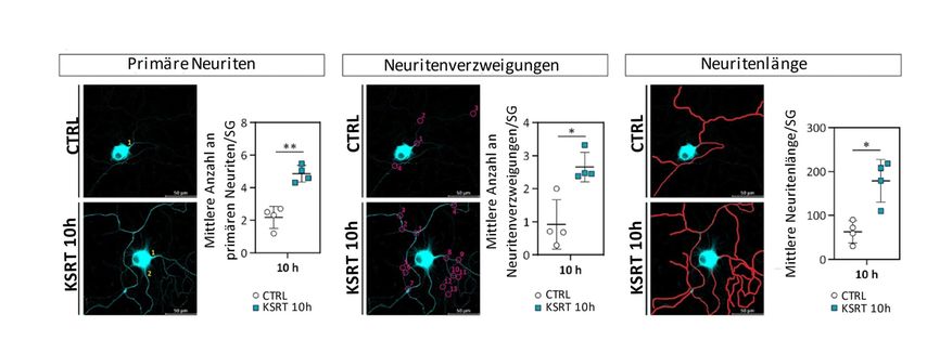 Die Anwendung von KSRT auf Nervenzellen in Zellkultur verbesserte deren Regenerationsprozesse.