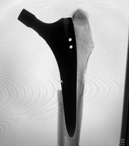 Medial-Wall-Fragment: Bei Frakturen mit einem Ausmaß von 40% der medialen Verankerungsstrecke des Schaftes kann eine Refixierung des Clamshell-Fragments unterbleiben.