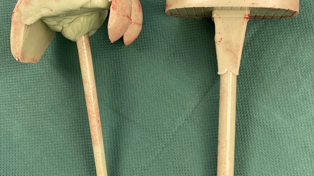 Die Vorteile der Spacer oder Zementplomben im zweizeitigen Intervall liegen klar in der kontinuierlichen Abgabe von Antibiotika, die zum Teil auch individuell beigemischt werden können. Zusätzlich können mobile Spacer auch nach mehreren Revisionen dem Knochendefekt individuell angepasst werden, wodurch sich die Mobilität in der Intervallzeit erhöht (Abb.1). Die Weichteile und das Knochengewebe können sich in der Intervallzeit erholen und so sieht man beim geplanten Wiedereinbau zumeist ein infektfreies, unauffälliges Gewebe.