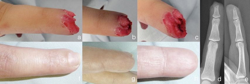 Zahlreiche klinische Studien haben seither die Effektivität der Behandlungsmethode mittels Okklusionsverband mit Wiederherstellung einer annähernd normalen Fingerkuppe, guter Weichteildeckung, ungestörter Sensibilität, aber auch Regeneration der Leistenhaut bestätigt. Zugleich wird auf die kürzere Arbeitsunfähigkeit im Vergleich zu lappenplastischen Deckungen hingewiesen.1,6–8,10–12