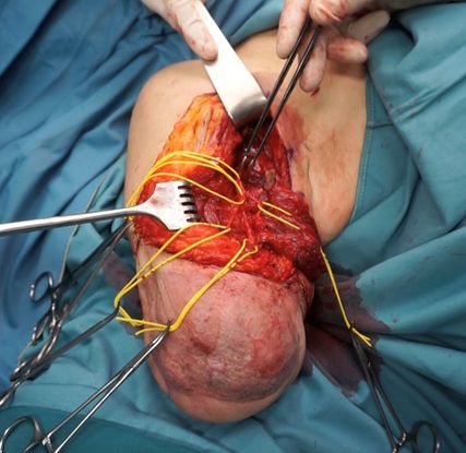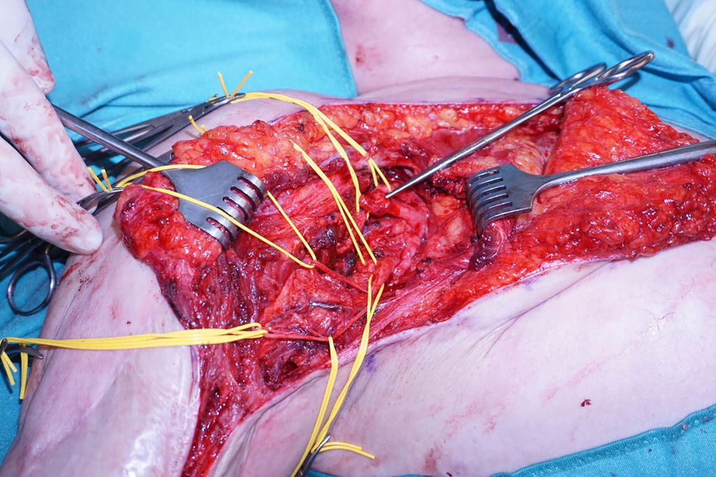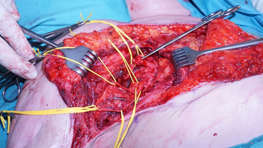 Abb. 2: Intraoperative Präparation der Äste des N. musculocutaneus bei einem Patienten mit transhumeraler Amputation