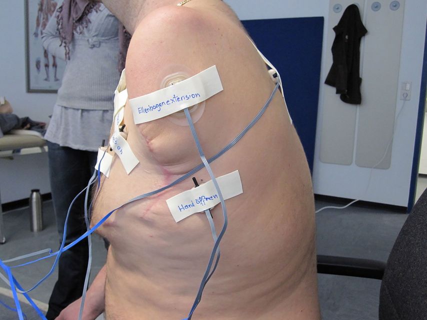 Durch die fortlaufende technische Entwicklung sind heutzutage sehr hochwertige Handprothesen verfügbar, welche jedoch einer feinen Steuerung bedürfen.1 Bei klassischer transradialer Amputation ohne eine proximale Nervenschädigung (z.B. Plexusläsion) sind genug Signale im Unterarm für die Steuerung einer myoelektrischen Prothese vorhanden. In der Regel sind hierfür zumindest zwei antagonistische Signale, welche von den restlichen Armbewegungen trennbar sind, notwendig (z.B. Hand öffnen und schließen oder Pronation/Supination).
