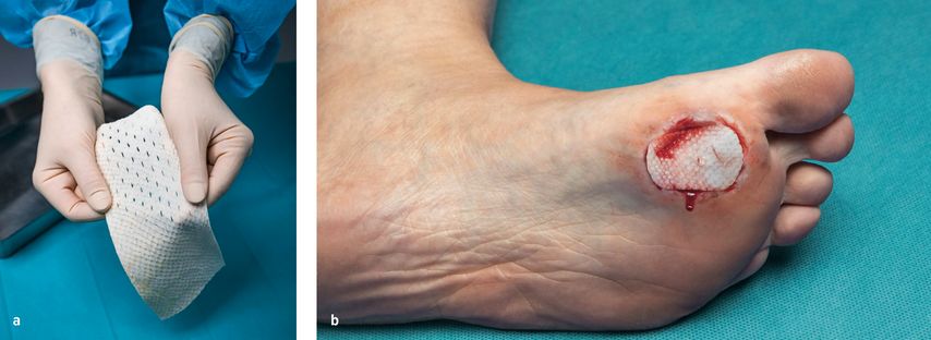 Die beiden Vorstände der Universitätskliniken Graz und Wien, Univ.-Prof. Dr. Lars-Peter Kamolz und Univ.-Prof. Dr. Christine Radtke, brachten dem Auditorium die Kerecis Omega-3-Fischhaut des Kabeljaus, gewonnen vor der Küste Islands, für die Wundheilung nahe (Abb. 2). Kerecis sei, so Kamolz, ein biologisch aktiver Verband, der die Wundbehandlung verkürze, jedoch nicht für Bagatellverletzungen gedacht sei: „Die Fischhaut beschleunigt und moduliert die Wundheilung, indem Granulationsgewebe gebildet wird.“ Nach Aufbringen auf die Wunde werden körpereigene Zellen rekrutiert, um die Wunde beim Heilungsprozess zu unterstützen, indem sie in die Poren der Fischhaut einwachsen. Bis auf Fischallergie gibt es keine Kontraindikationen. Die Fischhaut muss nicht entfernt werden, da sie sich mit der Zeit selbst resorbiert. Diskussionswürdig sind die hohen Kosten verglichen mit dem Preis eines Kabeljaus. Laut Kamolz sei das Material einfach in der Handhabung, man müsse allerdings Erfahrung sammeln, es gebe definitiv eine Lernkurve.