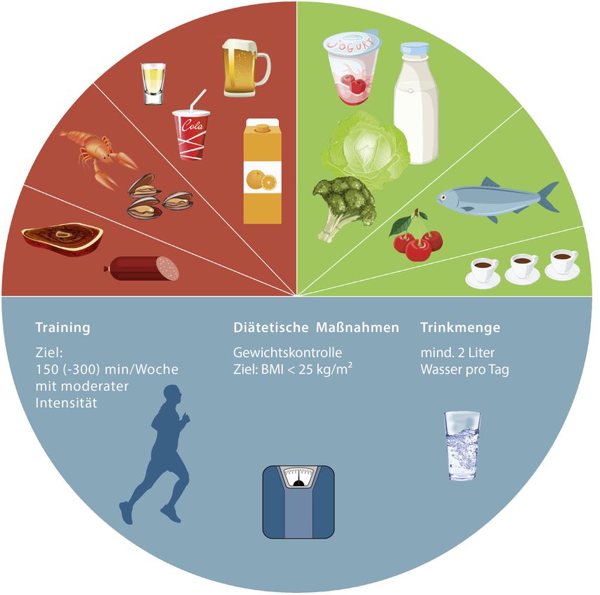Was ich den Patient:innen versuche zu vermitteln, ist: Gicht ist in erster Linie eine vererbbare Stoffwechselerkrankung. Viele Betroffene fühlen sich „schuldig“ an ihrer Erkrankung, weil Gichtschübe im Gefolge von diätetischen oder alkoholischen Entgleisungen auftreten können. Dieses Schuldgefühl sollte man dringend ansprechen und den Patient:innen vielmehr vermitteln, dass sie durch konsequente medikamentöse Therapie, diätetische Maßnahmen, körperliche Bewegung und Körpergewichtsmanagement die Möglichkeit haben, ihre Erkrankung selbst positiv zu beeinflussen. All diese Maßnahmen wirken sich nicht nur positiv auf die Gicht aus, sondern auch auf die allgemeine Stoffwechselsituation der Betroffenen. Wir haben es in der Regel mit Menschen mit internistischen Komorbiditäten zu tun, die oft gleichzeitig an Hypertonie, Typ-2-Diabetes und chronischen Herz- oder Nierenkrankheiten leiden. Dies erfordert nicht nur eine adäquate Therapie ihrer Gicht, sondern auch ein allgemeininternistisches Screening, eine allgemeininternistische Betreuung und die sorgfältige Behandlung der Komorbiditäten.