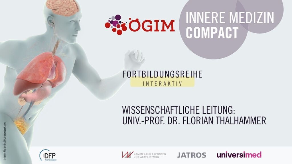 Wir freuen uns, wenn Sie Interesse haben, sich bei der interaktiven Webinarreihe „ÖGIM Innere Medizin Compact“ fortbilden zu wollen. Bei jedem Termin steht ein anderes Organsystem im Fokus, das die inhaltliche Basis für jeweils vier Expert:innen-Vorträge bildet.