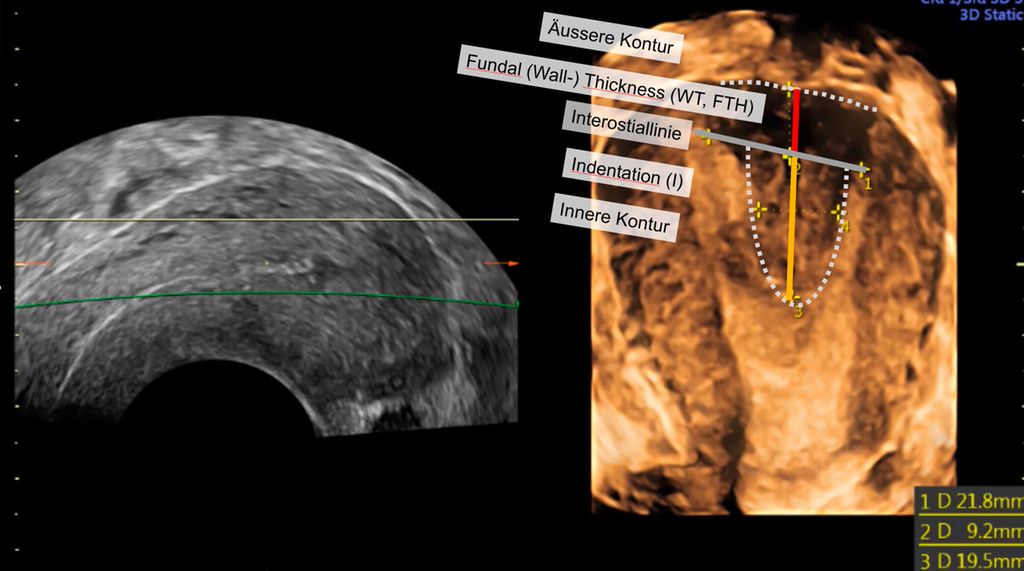 Die 3D-Sonografie erleichtert insbesondere die Diagnostik uteriner Fehlbildungen. Diese können z.B. nach ESHRE/ESGE beschrieben werden, wobei die Ultraschallkriterien nach CUME 2018 in der Diagnostik von Bedeutung sind.