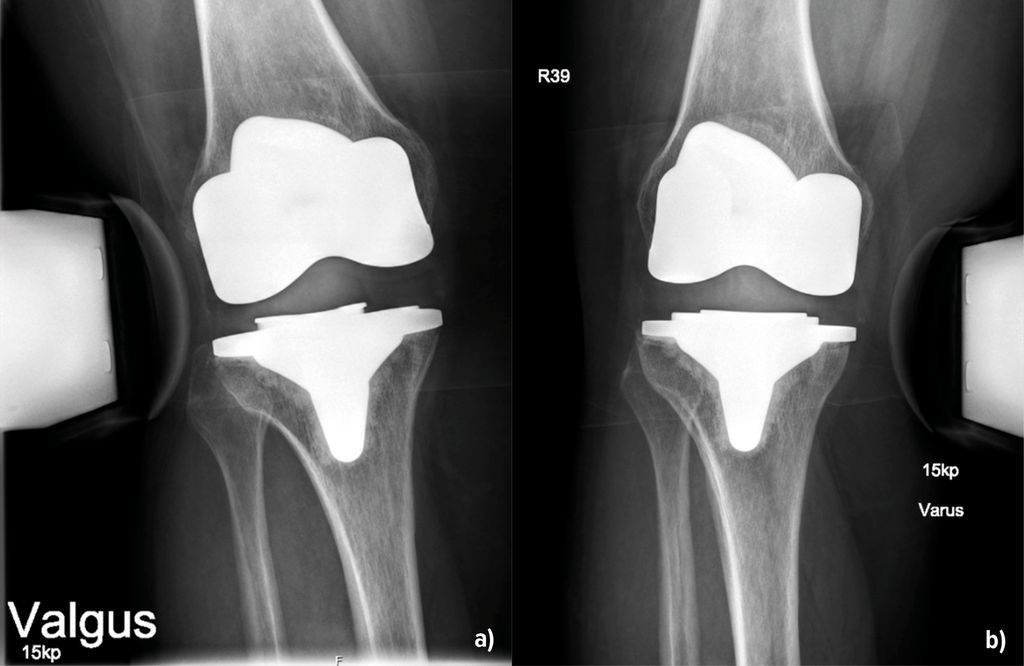 Die Instabilität von Knietotalendoprothesen beeinflusst die Zufriedenheit der Patient:innen und führt häufig zu Revisionseingriffen. In einer grossen retrospektiven Studie mit Erfassung von fast 40000 Patient:innen aus den Jahren 1996–2021 konnten Ergin et al. (2025) Risikofaktoren, welche mit einer Instabilität nach Endoprothetik einhergehen, darstellen. Dazu gehörten ein jüngeres Alter, das weibliche Geschlecht, ein Schlaganfall, tiefe Beinvenenthrombosen, Nickelallergie, Osteoporose und – überraschend – die Sklerodermie. Die Adipositas stellt demnach kein erhöhtes Risiko dar. Über die Details der Ursachen berichtet die Arbeit allerdings nicht, sondern beschreibt diese als multifaktoriell. Jedoch können die Autoren aus der eigenen klinischen Praxis berichten, dass durchaus Unterschiede in Bezug auf das Inlay bestehen. Entweder war dieses primär zu flach oder es ist zu einer Lockerung der Bänder im Verlauf gekommen. Auch der Verschleiss des Inlays über die Zeit spielt erfahrungsgemäss eine Rolle (Abb. 1). Bei der Differenzierung, welches Ausmass einer Varus- oder Valguslaxizität zu einem annehmbaren oder schlechten klinischen Ergebnis führt, fanden Mitsu-Uchi et al. (2025), dass eine mittlere Instabilität von 3–6mm im medialen Kompartiment für ein besseres postoperatives Ergebnis von Bedeutung sei. Eine straffe Implantation mit einer Instabilität von <3mm sowie Instabilitäten von >6mm führten demnach zu niedrigeren Zufriedenheitswerten bzw. Knee-Scores. Somit soll eine mittlere mediale Laxizität für ein besseres postoperatives Ergebnis sorgen, was bereits bei der Implantation Beachtung finden kann. Neben dem klinischen Nachweis ist die gehaltene Röntgenaufnahme geeignet, um den Befund zu verifizieren und zu dokumentieren (Abb.2). Bezüglich der Ursachen für Fehlschläge primärer Knietotalendoprothesen finden sich die Instabilitäten mit einer Häufigkeit von 7% bzw. 4,55% an 3. bzw. 4. Stelle. Vorwiegende Gründe für Revisionen sind hingegen periprothetische Infektionen (22,3% bzw. 47,73%), die aseptische Lockerung (20,5% bzw. 35,23%) und Bewegungseinschränkungen (5,68%) (Datta et al. 2025, Mozella et al. 2024). In einer Arbeit von Poilvache et al. (2025) wurde das Übergewicht als Risikofaktor für Komplikationen nach K-TEP untersucht. Die Hauptursachen für die initiale Revision waren die aseptische Lockerung mit 37%, die Instabilität (29%) und der Abrieb oder Osteolysen (13%). Die Arbeit erbrachte ganz klar, dass ein BMI >40kg/m2 tendenziell mit einer Reoperation korrelierte. Allerdings nicht wegen Instabilität, sondern wegen periprothetischer Infektionen, und das auch nicht signifikant. Der BMI als Ursache einer Instabilität nach Revision wurde hier ausgeschlossen. Brown et al. (2025) beschrieben ein erhöhtes Risiko mit Hinblick auf eine Revision als Folge einer Instabilität oder einer Lockerung bei Fällen, in denen die Femurkomponente grösser als die Tibiakomponente war. Die Autoren empfahlen, primär die Wahl der Prothesengrössen zu beachten, um Instabilitäten vorzubeugen. Auf die Infektionsraten und den anterioren Knieschmerz fand sich in dieser Kohorte kein Einfluss.