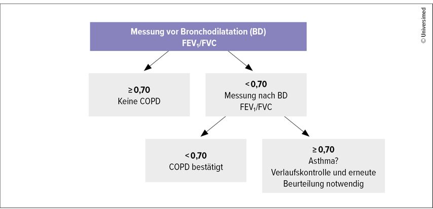 Abb. 1: GOLD-Empfehlungen für den Einsatz der Spirometrie bei der Diagnose von COPD (modifiziert nach Singh D et al. 2025)2