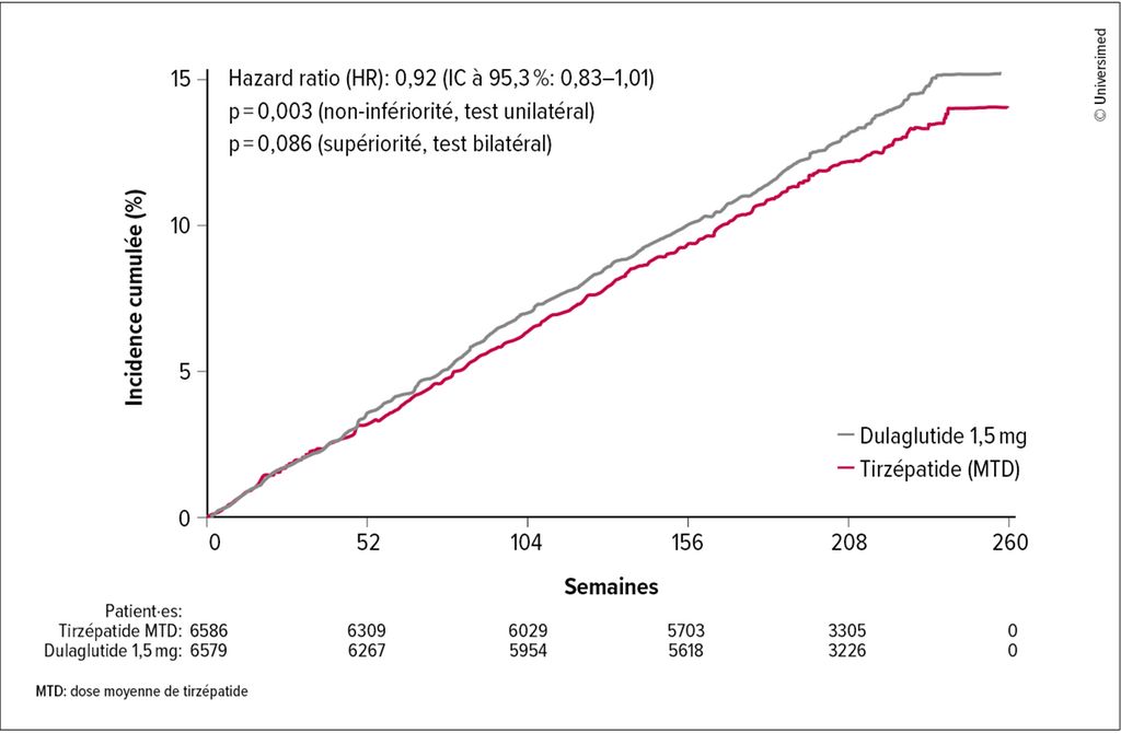 Le tirzépatide ne s’est pas révélé inférieur au dulaglutide en ce qui concerne le critère d’évaluation primaire MACE-3.