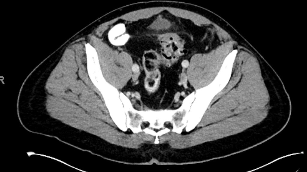 Les symptômes typiques de la diverticulite sigmoïdienne sont des douleurs soudaines avec défense abdominale du côté gauche ainsi que des paramètres inflammatoires élevés (CRP/leucocytose), éventuellement de la fièvre. Cependant, aucun type de maladie ne peut être défini avec suffisamment de certitude sur la seule base du tableau clinique et des résultats de laboratoire. Les techniques d’imagerie telles que l’échographie et la tomodensitométrie sont décisives. La sévérité de la maladie pouvant être très variable, la directive exige la confirmation du diagnostic et la classification de la maladie. La radiographie conventionnelle sous forme de lavement avec produit de contraste du côlon ne joue aucun rôle dans le diagnostic. La coloscopie ne présente aucun intérêt en cas d’inflammation aiguë. En raison du profil de risque et à titre préventif, une coloscopie totale élective doit toutefois être effectuée 6 semaines après la disparition des symptômes de la diverticulite.