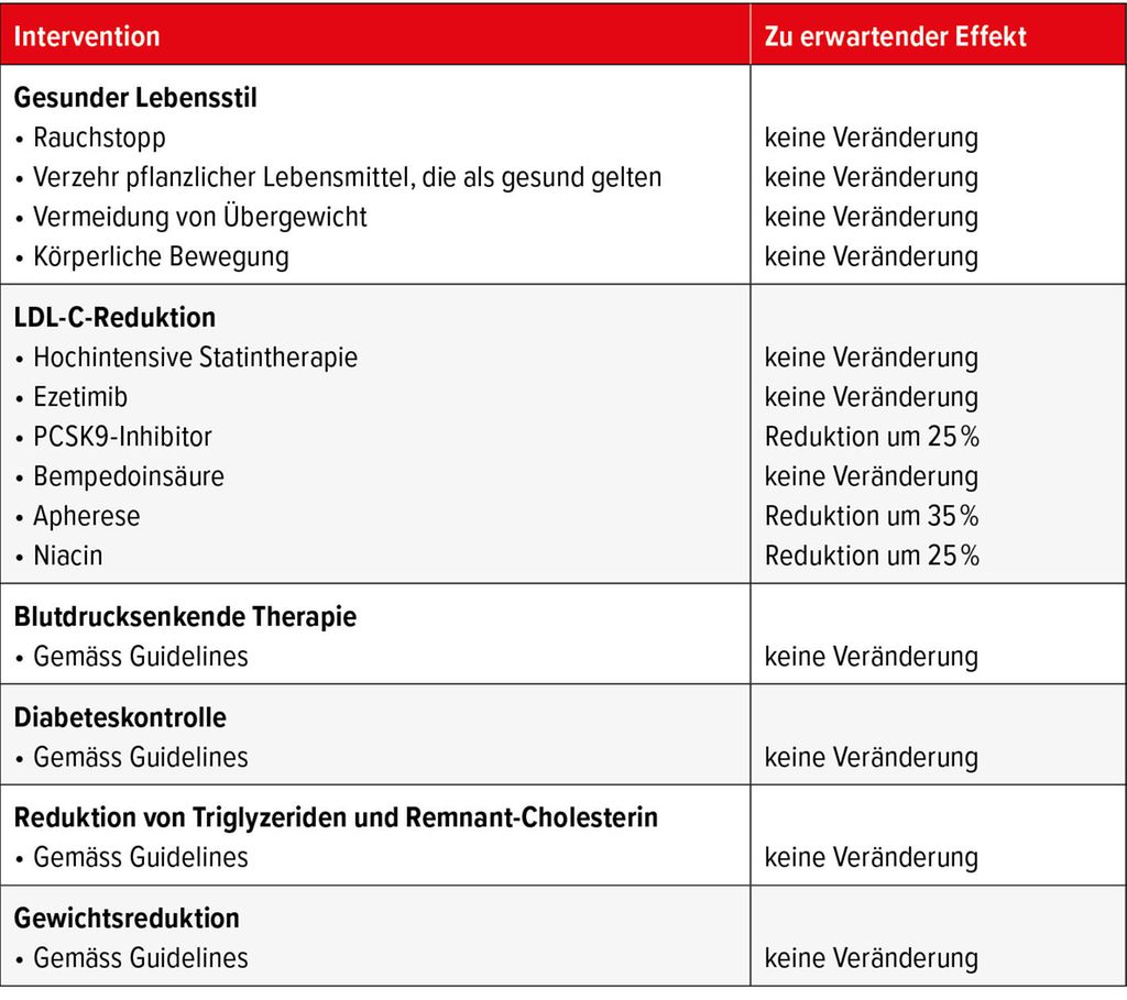 Bei erhöhtem Lp(a) sollten die traditionellen kardiovaskulären Risikofaktoren frühzeitig therapiert und optimal eingestellt werden.