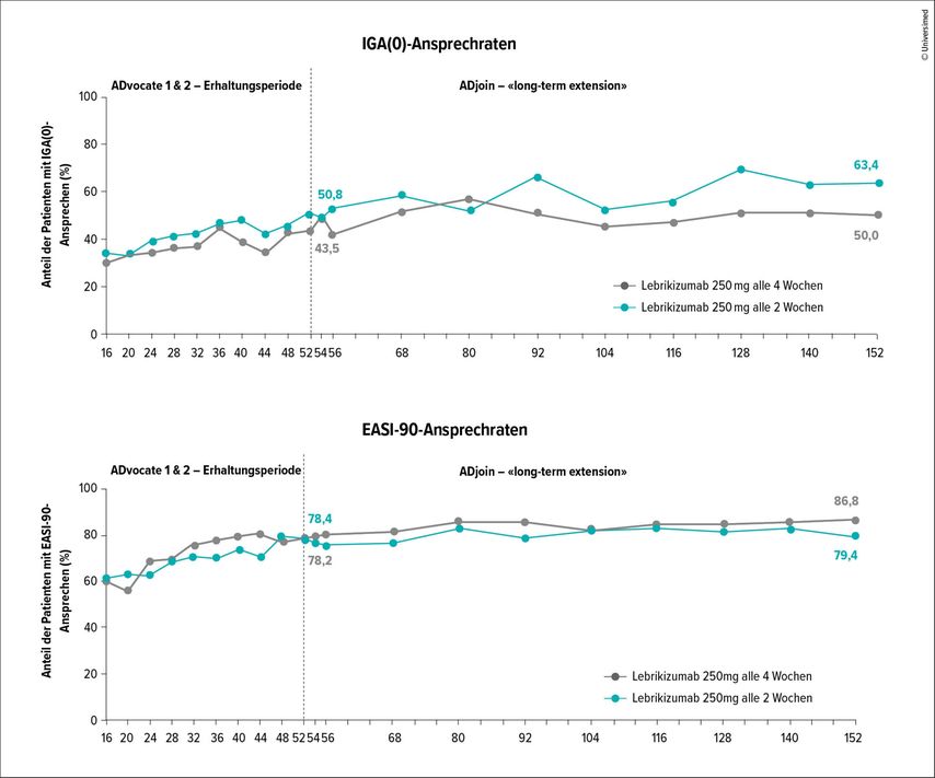 Abb. 1: Langanhaltende Wirksamkeit von Lebrikizumab über 152 Wochen (modifiziert nach Simpson E et al. 2025)4