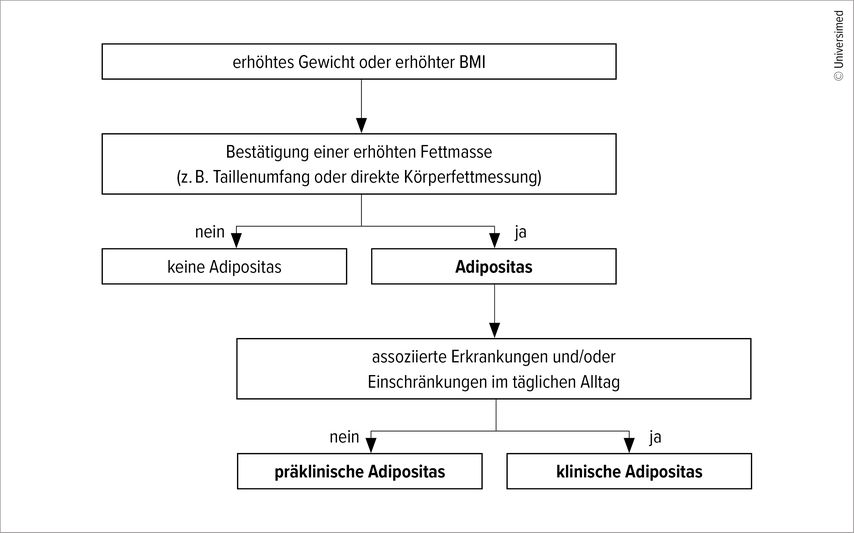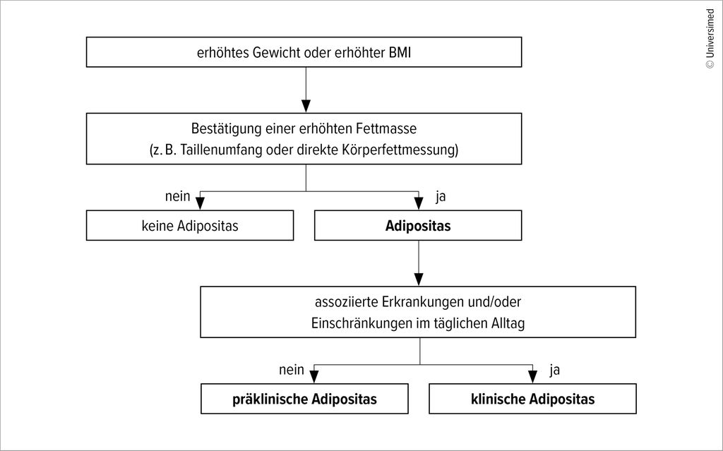 Adipositas ist eine chronische, komplexe Erkrankung mit multifaktorieller Genese, die ein individuelles und multiprofessionelles Management erfordert. Im Mittelpunkt der Therapie steht der gesundheitliche Benefit. Eine umfassende Abklärung und Behandlung begleitender Erkrankungen sollen stattfinden. Adipositas erfordert ein langfristiges, kontinuierliches Betreuungs- und Therapiekonzept.