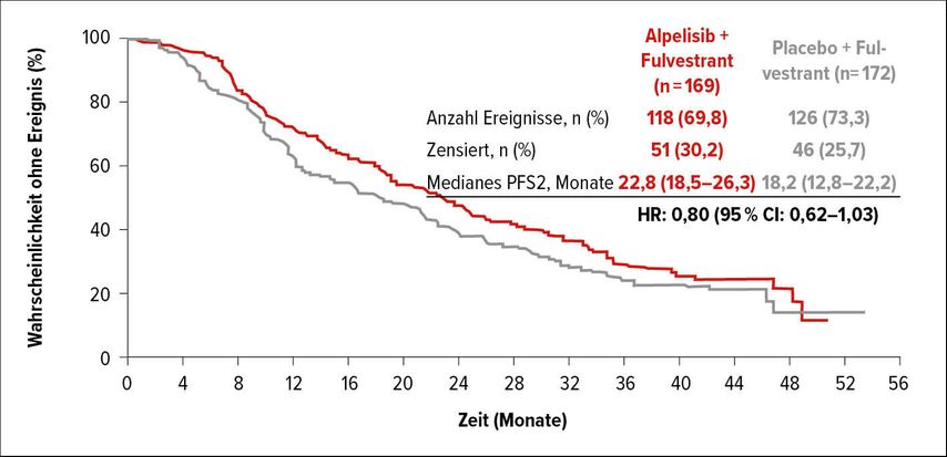 • André F et al.: Alpelisib for PIK3CA-mutated, hormone receptor-positive advanced breast cancer. N Engl J Med 2019; 380(20): 1929-40 • André F et al.: Overall survival (os) results from SOLAR-1, a phase III study of alpelisib (ALP) + fulvestrant (FUL) for hormone receptor-positive (HR+), human epidermal growth factor receptor 2-negative (HER2–) advanced breast cancer (ABC). ESMO-Meeting 2020; Abstr. LBA19 • Goetz MP et al.: MONARCH 3: abemaciclib as initial therapy for advanced breast cancer. J Clin Oncol 2017; 35(32): 3638-46 • Hortobagyi GN et al.: Updated results from MONALEESA-2, a phase III trial of first-line ribociclib plus letrozole versus placebo plus letrozole in hormone receptor-positive, HER2-negative advanced breast cancer. Ann Oncol 2018; 29(7): 1541-7 • Im SA et al.: Overall survival with ribociclib plus endocrine therapy in breast cancer. N Engl J Med 2019; 381(4): 307-16 • Martin M et al.: Results from PEARL study (GEICAM/2013-02_CECOG/BC.1.3.006): A phase 3 trial of Palbociclib (PAL) in combination with endocrine therapy (ET) versus Capecitabine (CAPE) in hormonal receptor (HR)-positive/human epidermal growth factor receptor (HER) 2-negative metastatic breast cancer (MBC) patients (pts) whose disease progressed on aromatase inhibitors (AIs). SABCS-Meeting 2019; Abstr. GS2-07 • Rugo HS et al.:BYLieve: A phase II study of alpelisib (ALP) with fulvestrant (FUL) or letrozole (LET) for treatment of PIK3CA mutant, hormone receptor-positive (HR+), human epidermal growth factor receptor 2-negative (HER2–) advanced breast cancer (aBC) progressing on/after cyclin-dependent kinase 4/6 inhibitor (CDK4/6i) therapy. J Clin Oncol 2020; 36(15_suppl): TPS1107 • Rugo HS et al.: Palbociclib plus letrozole as first-line therapy in estrogen receptor-positive/human epidermal growth factor receptor 2-negative advanced breast cancer with extended follow-up. Breast Cancer Res Treat 2019; 174(3): 719-29 • Slamon DJ et al.: Phase III randomized study of ribociclib and fulvestrant in hormone receptor-positive, human epidermal growth factor receptor 2-negative advanced breast cancer: MONALEESA-3. J Clin Oncol 2018; 36(24): 2465-72 •Sledge GW et al.: The effect of abemaciclib plus fulvestrant on overall survival in hormone receptor-positive, erbb2-negative breast cancer that progressed on endocrine therapy-MONARCH 2: a randomized clinical trial 2. JAMA Oncol 2019; 6(1): 116-24 • Turner NC et al.: Overall survival with palbociclib and fulvestrant in advanced breast cancer. N Engl J Med 2018; 379(20): 1926-36