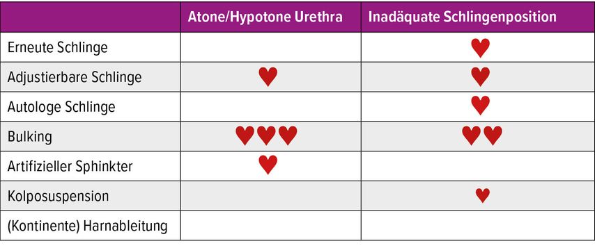 Grundsätzlich ist hervorzuheben, dass es hinsichtlich der besten Therapie bei Rezidiv nach primär eingelegter suburethraler Schlinge keinen Konsensus gibt.33–36