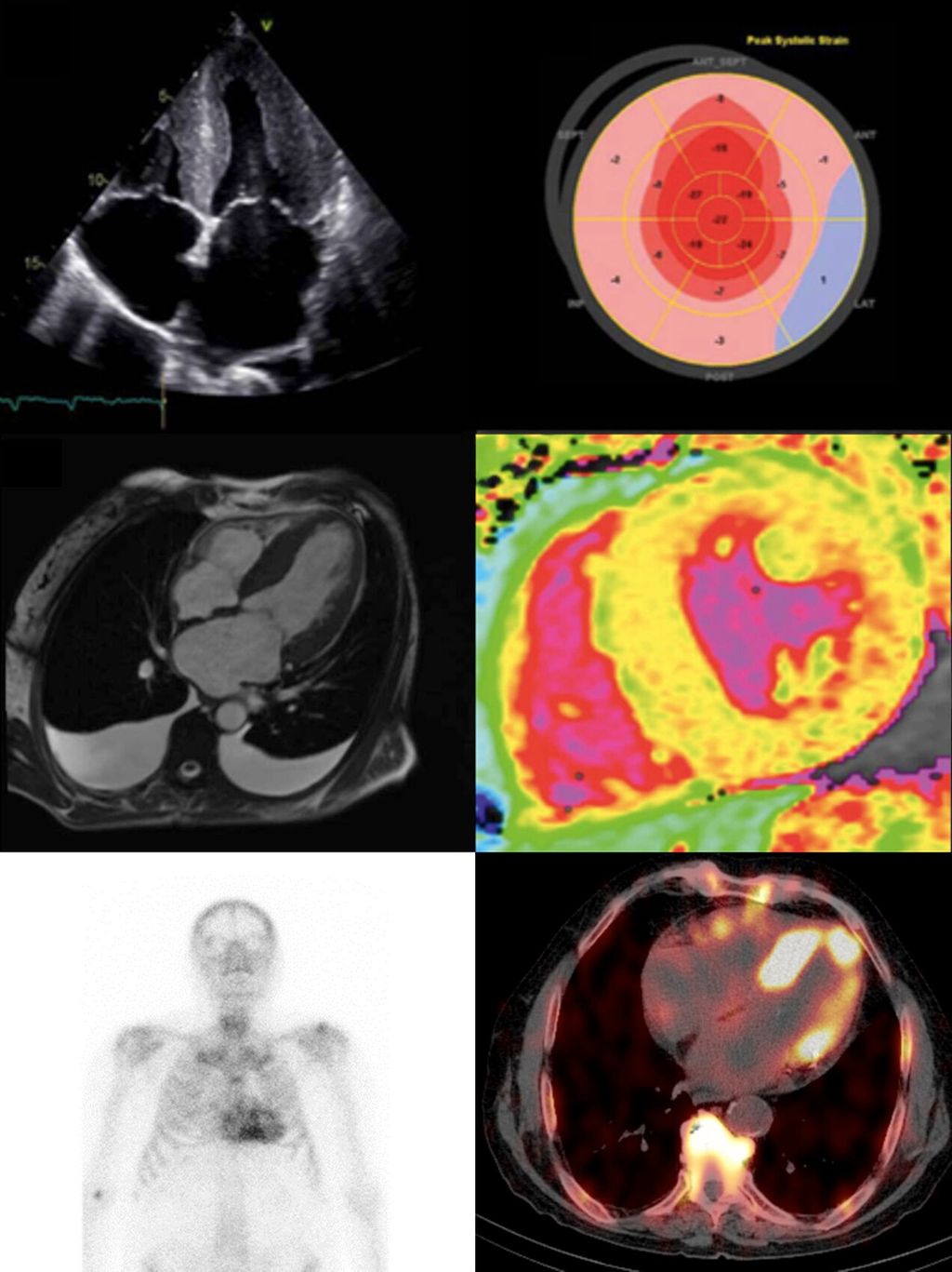 Abb. 1: Bildgebende Verfahren zur Diagnostik einer Transthyretin-Amyloid-Kardiomyopathie (ATTR-CM) (Quelle: eigene Anfertigung)
