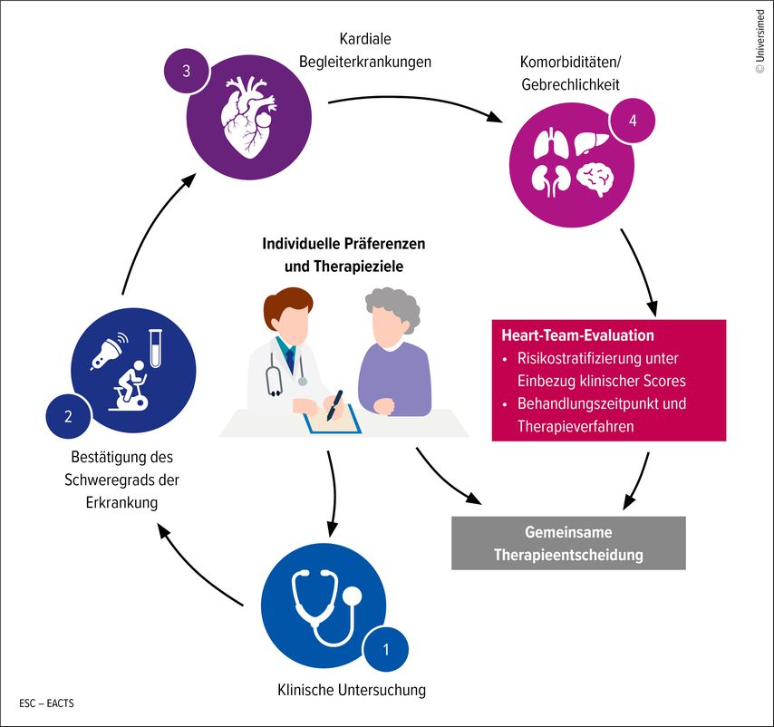 Sie betonen die Bedeutung eines multidisziplinären, patientenzentrierten Ansatzes (Stichwort Heart-Team) und einer individualisierten Entscheidungsfindung (Abb. 1).