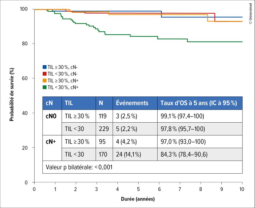 Comme le soulignent les auteur·es, les TIL constituent un outil de stratification rentable et universel. Une validation des données est en cours chez les patient·es issu·es du GAMBIT recevant un traitement adjuvant par chimiothérapie plus pembrolizumab.