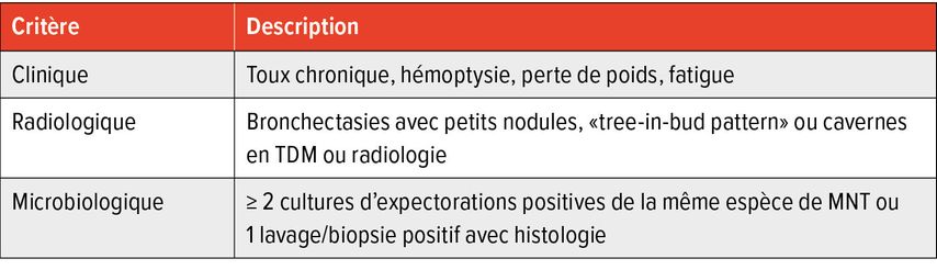Les infections dues aux mycobactéries non tuberculeuses connaissent une augmentation significative à l’échelle mondiale. Il demeure cliniquement difficile de différencier colonisation, infection transitoire et véritable maladie liée aux MNT. Un diagnostic rigoureux est essentiel, car les traitements antibiotiques sont très longs et souvent associés à de nombreux effets indésirables.