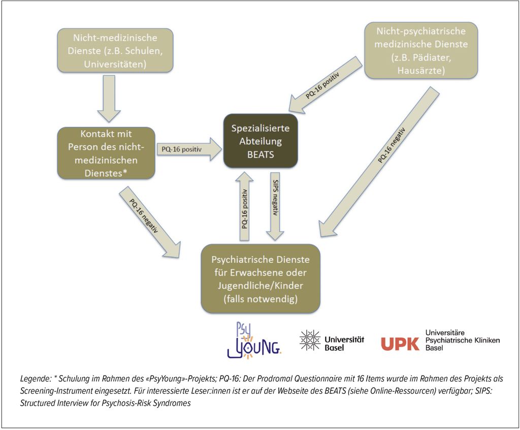 Prävention, Früherkennung und Frühintervention bei psychotischen Erkrankungen sind von besonderer Bedeutung. In der Schweiz gibt es einige etablierte Zentren für die Psychosefrüherkennung, unter anderem das BEATS (Basel Early Treatment Service) der Universitären Psychiatrischen Kliniken (UPK) Basel. Das BEATS war Teil des interkantonalen Forschungsprojektes «PsyYoung», welches massgeblich dazu beigetragen hat, die Vernetzung und Standardisierung in der Früherkennung von Psychosen in der Schweiz zu verbessern.