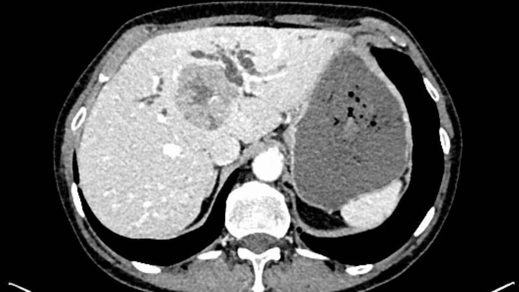 Im Oktober 2020 stellte sich eine 80-jährige Patientin erstmals in der GI-onkologischen Ambulanz Innsbruck vor. Sie berichtete über vor wenigen Wochen aufgetretene, von vermehrtem Aufstoßen begleitete, kolikartige Oberbauchschmerzen, die initial als Gastritis fehlgedeutet wurden. Seit einer Woche war sie zunehmend ikterisch. Bei der sonografischen Abklärung zeigte sich eine tumoröse Raumforderung der Leber.