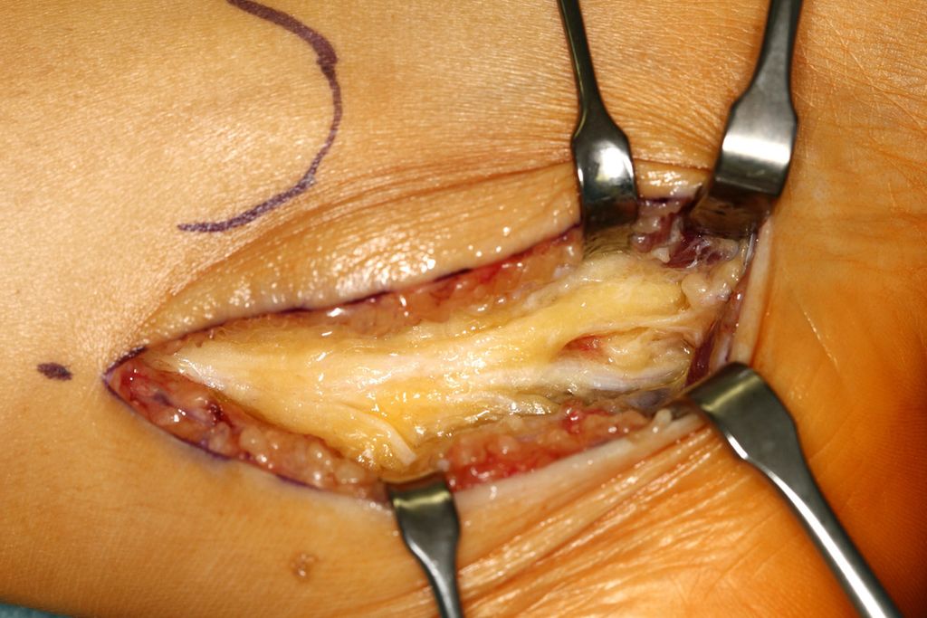 Um einer chronischen Schädigung des Nerven vorzubeugen, wird bezüglich des Zeitpunktes für die chirurgische Intervention von manchen Autoren eine maximale Symptomdauer von 10 bis 12 Monaten empfohlen.3 Gute chirurgische Ergebnisse können bei kurzer Dauer der Symptome, Vorliegen einer Raumforderung, fehlender Traumaanamnese und bei Patienten, die keine stehenden Tätigkeiten ausüben müssen, erzielt werden. Die Erfolgsrate wird dabei in manchen Studien mit bis zu 90% angegeben.1 Risiken für das Versagen operativer Maßnahmen sind vor allem die falsche Diagnosestellung, ein inkompletter Release des Tunnels und bereits vorliegende Schäden des Nerven durch ein direktes Trauma oder systemische Erkrankungen.