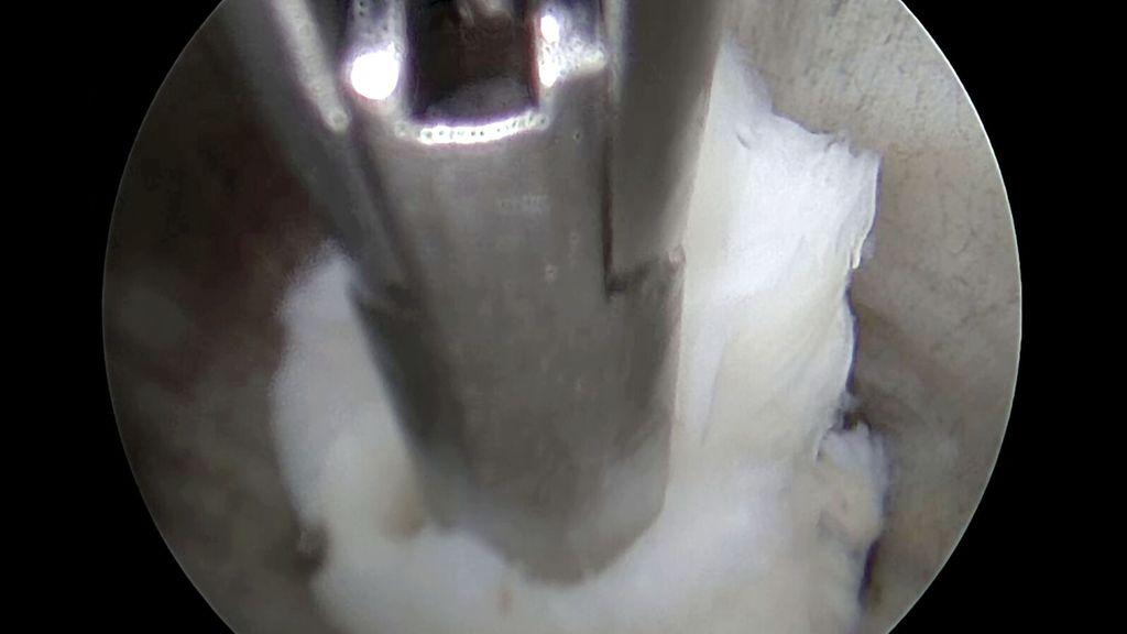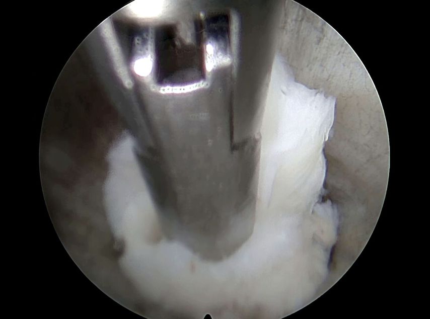 Abb. 1: Resektion einer Diskushernie via einen uniportalen Zugang interlaminär