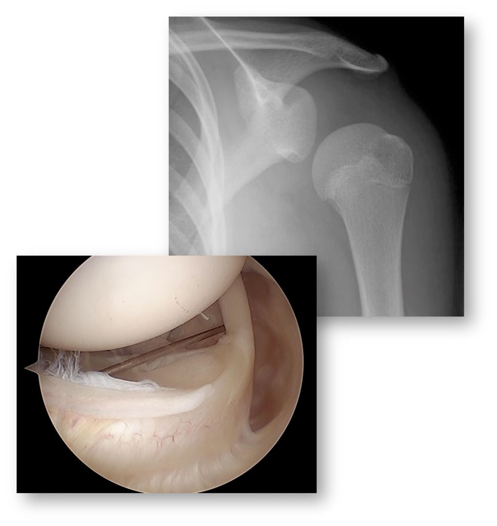 Abb. 5: Das Röntgen zeigt die enorme Schulterinstabilität, in der Arthroskopie zeigt der «Skybox View» die Kapselweite
