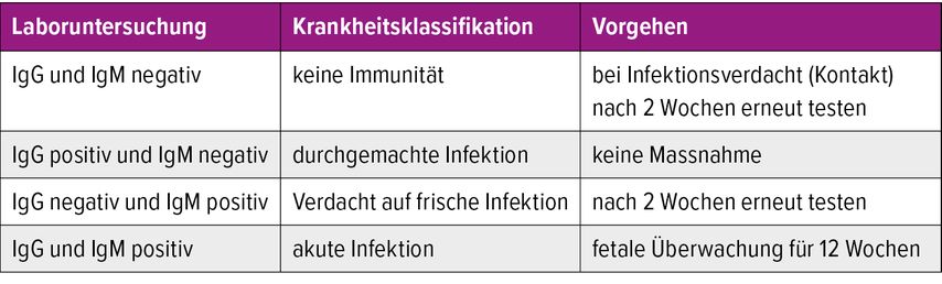 Beide negativ: keine Immunität; bei Exposition wird eine serologische Kontrolle nach 2–4 Wochen empfohlen.