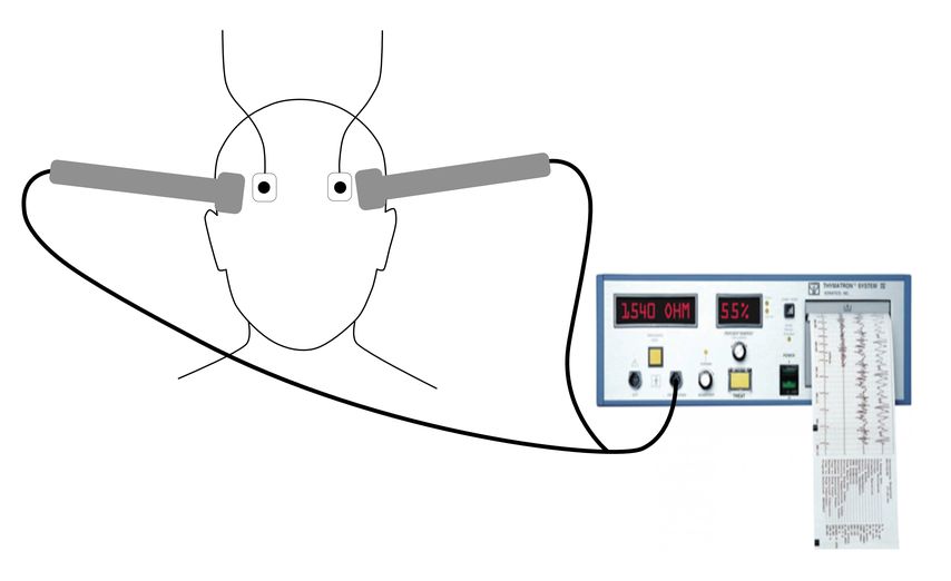 Die hohe Wirksamkeit der EKT bei der Behandlung der Depression ist bereits seit Langem in randomisiert-kontrollierten Studien gut belegt.22 Die EKT ist ein sicheres Verfahren, das unter kontrollierten Bedingungen in Kurznarkose und unter Muskelrelaxation stattfindet. Ein für wenige Sekunden applizierter, schwacher Wechselstrom (Stromstärke ca. 0,9 Ampere) löst einen generalisierten Anfall aus, der ungefähr eine halbe Minute andauert und sich dann selbst limitiert (Abb.2).