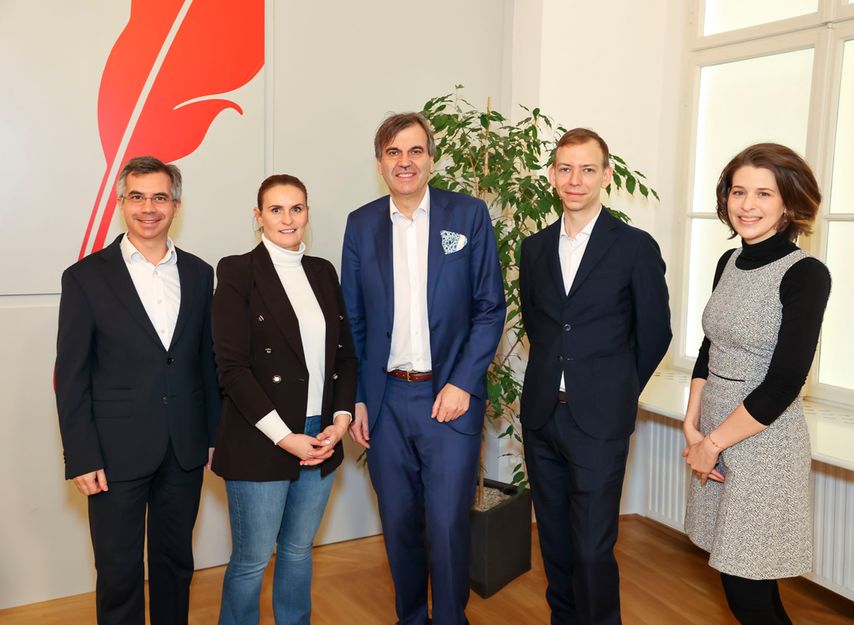Univ.-Prof. DDr. W. Hötzenecker, Dr. N. Golob-Schwarzl, Univ.-Prof. Dr. P. Wolf, OA Dr. T. Welponer, N. Ballicas, PhD (v.l.n.r.)
