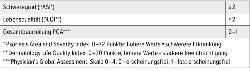 Galten vor einigen Jahren Therapieziele wie Psoriasis Area and Severity Index (PASI) 100 oder Dermatology Life Quality Index (DLQI) 0/1 noch als schwer erreichbar, sind sie bei der ...