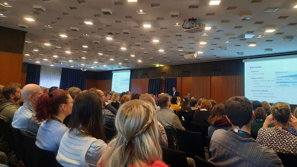 Mit rund 2000 Teilnehmern hat sich der zweitägige „Wund-Kongress des Südens“ im Zuspruch weiter gesteigert. Das Publikum erwarteten 160 Beiträge in 90 Sessions aus allen Bereichen der Medizin, wie Chirurgie, Dermatologie, Diabetologie, Phlebologie, Angiologie, Geriatrie und Lymphologie, Intensivmedizin sowie Hygiene und Mikrobiologie. Ein Highlight waren die Ausblicke auf die Perspektiven der Diagnostik und Behandlung. Hier wurde auch aufgezeigt, wie weit fortgeschritten die digitale Versorgung in Deutschland tatsächlich ist und wie zukünftig intelligente Hightech-Verbandmaterialien die Wundversorgung verbessern können.