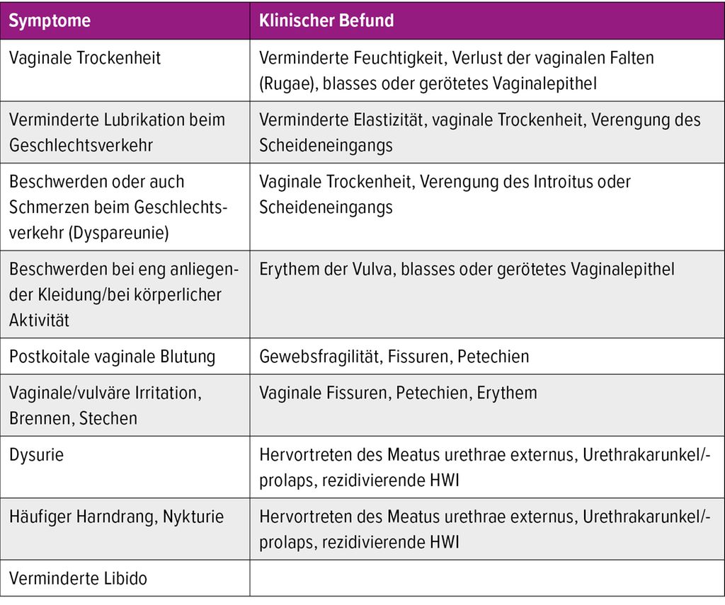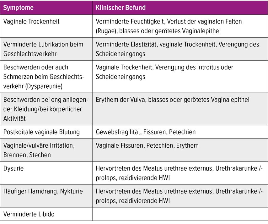 Bis zu 84% der Frauen in der Menopause sind vom urogenitalen Menopausensyndrom betroffen. Derzeit stellt es immer noch ein schambehaftetes Thema dar. Der Therapiefokus liegt je nach Beschwerdebild vorrangig bei nicht hormonellen Feuchtigkeitspräparaten. Bei Therapieresistenz soll den betroffenen Frauen eine lokale Therapie mit Östrogenen angeboten werden. Die vaginale Behandlung von Frauen mit urogenitalem Menopausensyndrom und Z.n. Mammakarzinom oder Z.n. Endometriumkarzinom mit Ersatztherapie ist nach der neueren Datenlage sicherer, jedoch besteht weiterhin Forschungsbedarf.