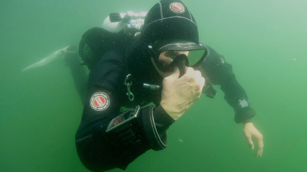 Handzeichen für Druckausgleichsproblem geben, etwas aufsteigen und Druckausgleich neuerlich versuchen