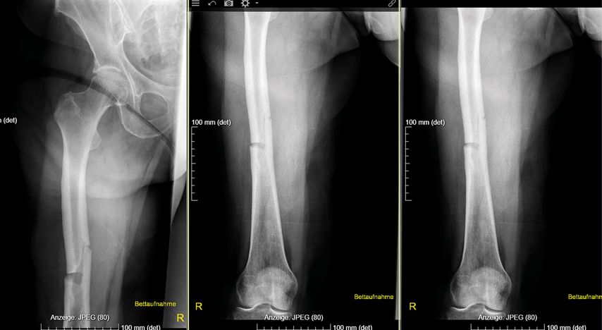 Atypische Femurschaftfrakturen unter antiresorptiver Therapie mit Bisphosphonaten oder Denosumab sind selten, aber für die Patient:innen dramatisch.