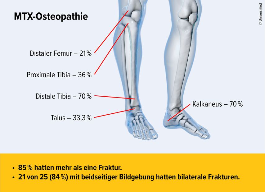 Die in der Literatur untersuchten Patienten mit MTX-Osteopathie waren häufiger postmenopausal und wurden aufgrund einer rheumatoiden Arthritis oder Psoriasis-Arthritis behandelt.