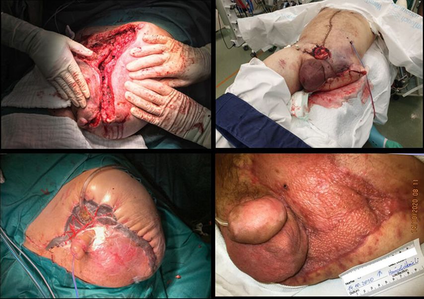 Aufgrund der massiven Instabilität des Patienten muss die Entscheidung für eine Amputation bzw. subtotale Hemipelvektomie getroffen werden. Nach dem Abklemmen der Venen wird der Ballon nach einer Cuff-Zeit von etwa 40 Minuten vorsichtig abgelassen, wodurch der Blutdruck nur minimal fällt. Eine Hemipelvektomie mit Belassen von ausreichend durchbluteter Haut für den sekundären Wundverschluss wird durchgeführt und der verbleibende Hohlraum mit Bauchtüchern ausgestopft und gepackt. Der Situs ist trocken und die Hämodynamik des Patienten stabil.