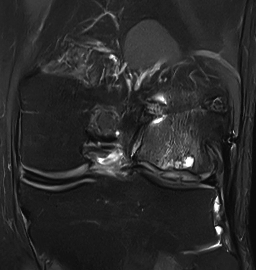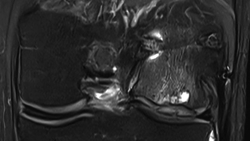 Abb. 1: Hypertrophie des Knorpelregeneratgewebes am lateralen Femurcondylus nach MACT (matrixgekoppelte autologe Knorpeltransplantation) mit subchondraler Zystenbildung
