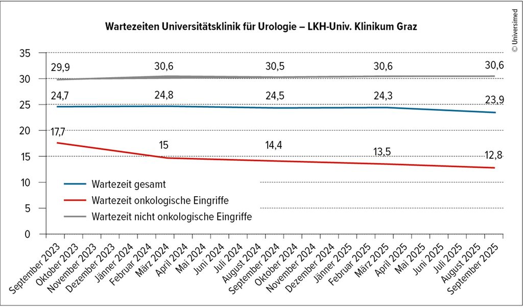 Seit September 2023 werden an der Klinik für Urologie der Medizinischen Universität Graz alle Patient:innen ab 18 Jahren, die für einen elektiven Eingriff aufgenommen werden, im Rahmen einer prospektiven Beobachtungsstudie befragt. Ziel ist es, Wartezeiten, Operationsverschiebungen und die damit verbundene psychische und körperliche Belastung zu erfassen und auszuwerten.
